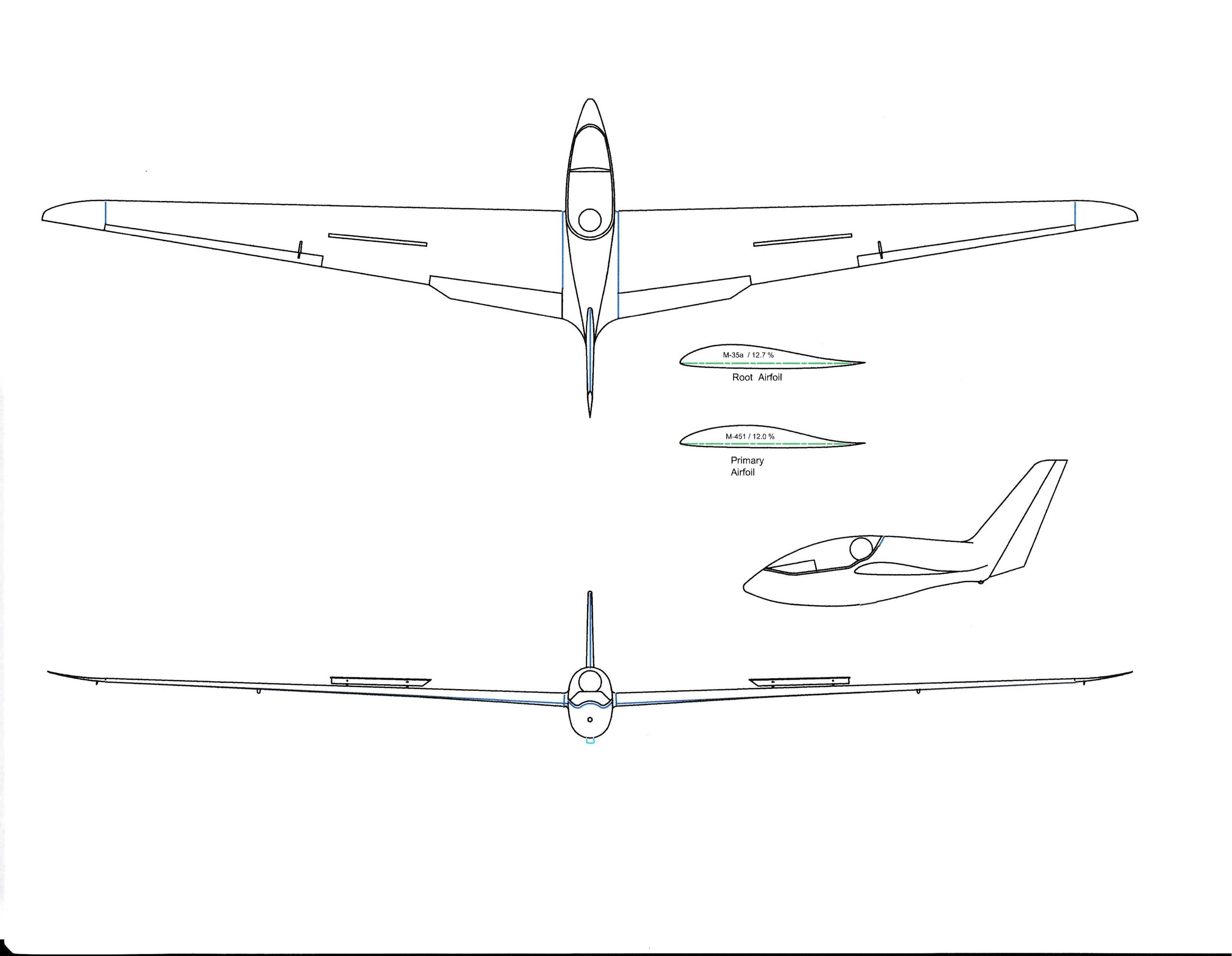 The sum of Jim Marske's knowledge and experience was applied to a redesign of Pioneer 3 wing with the goal of maximizing performance. With information gained from flight testing Pioneer 3 Jim was able to apply this to design a low drag airfoil with custom pitch curve.